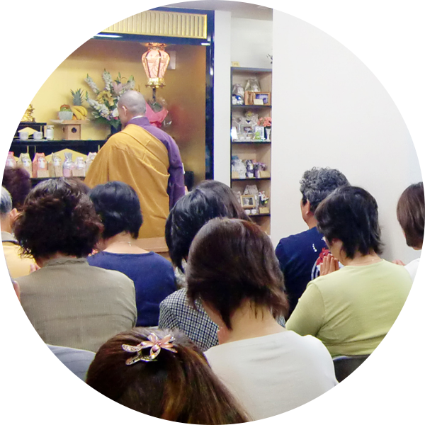 僧侶を迎えての合同供養式を毎月10日に行っております。多くの方にご参加いただいております。